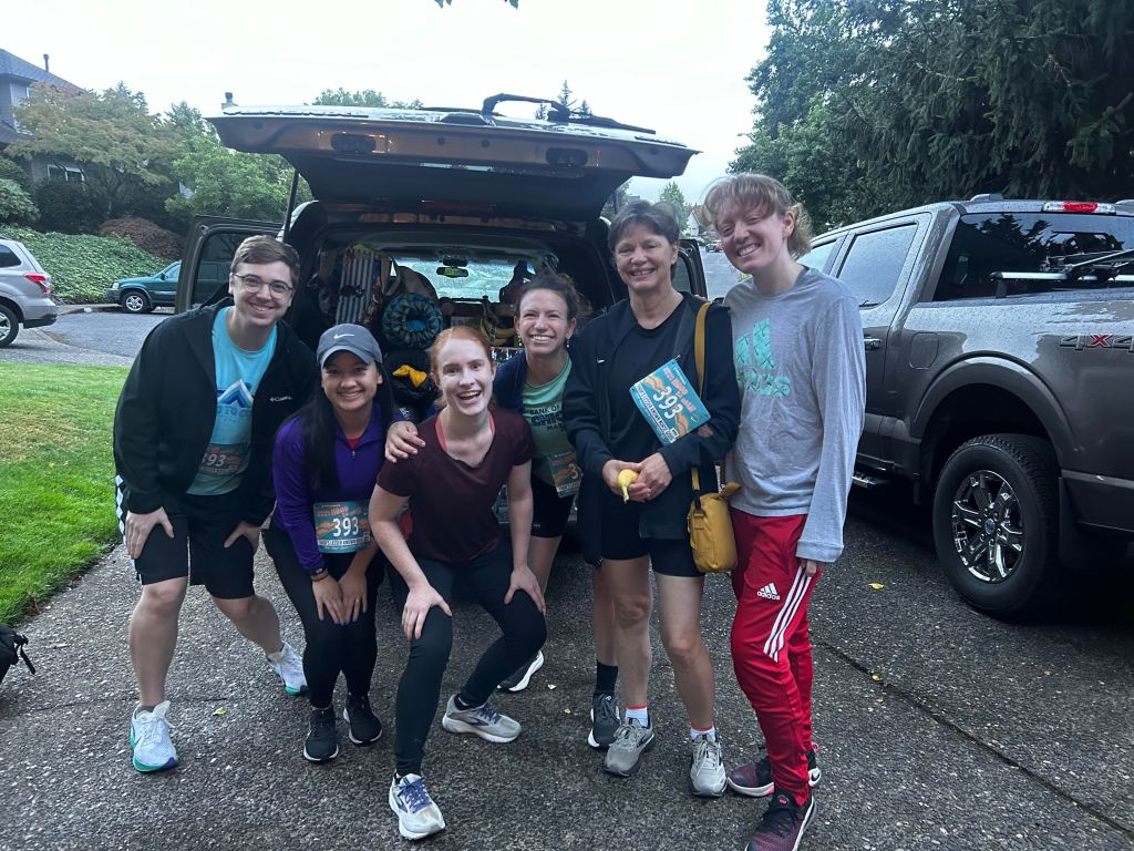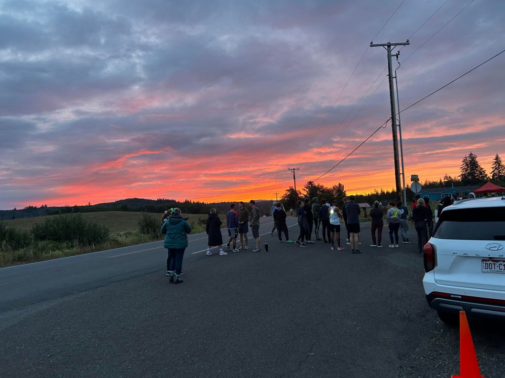 Time went on and I recovered enough to join the relay race. Running this race for the first time with my team was the most incredible experience. I loved the journey of working together to achieve our collective goal of running from the mountains to the coast. Out of my set of race legs, the late-night run stands out most clearly. I took the baton and set off, along the wide forest road that plunged into dense woods, keeping a brisk pace as I moved through the trees. I inhaled cold alpine air as I listened to the chatter of insects and small animals in the brush nearby. That leg of the race was followed by a quick sleep out under the stars, where we were exposed to the elements for a couple hours of surprisingly satisfying rest.